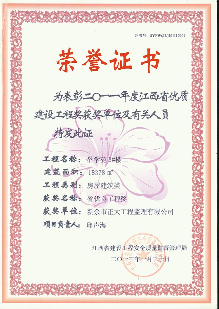 新余市正大工程監理有限公司依托新余市建筑設計院,于1995年11月成立,是新余市開展監理工作最早的監理單位,本公司具有建設部核發的房屋建筑工程甲級監理資質、市政公用工程乙級監理資質、國家人防辦核發的人防工程監理乙級資質。我公司始終堅持“客戶至上、質量第一、信守合同”的經營理念;追求“為社會創造價值、為業主創造效益、為自身謀求發展”的經營宗旨;遵循“守法、誠信、公正、科學、優質、高效”的工作原則,以雄厚的技術力量、完善的管理制度、豐富的監理經驗、良好的企業信譽迅速成為我市監理行業的一支新銳力量! 查看更多>>